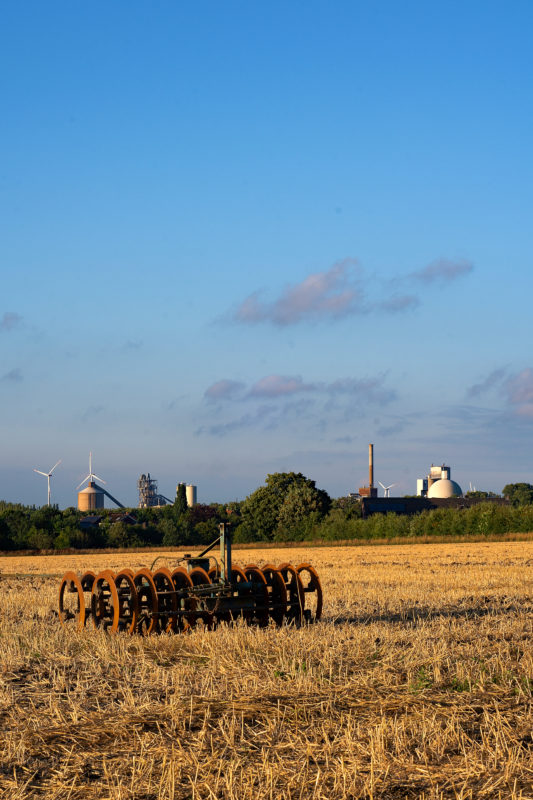 Dieses Bild der Beckumer Berge ist stellvertretend für die überwiegende Nutzung der Landschaft. Ackerbau auf den meist schweren Böden und Zementindustrie. Links: Phoenix Krogbäumer, rechts: ehemaliges Werk Mersmann